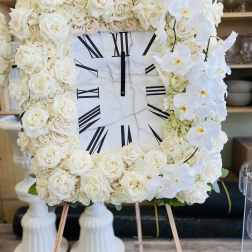 Price: $350.00Timeless White Rose & Orchid Clock Tribute