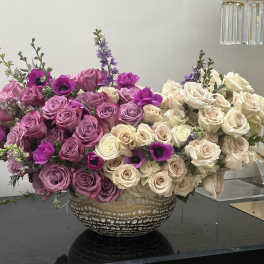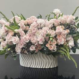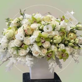 Price: $485.00 Ella Luxury White & Ivory Rose Floral Arrangement Product Tags: Best seller Same-day Delivery